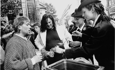 Suppenausgabe in der Hamburger Innenstadt.