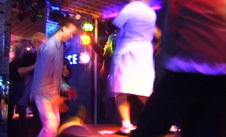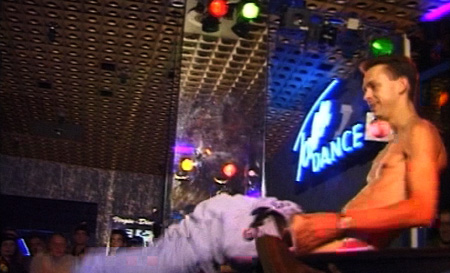 Die Drehbühne der Peepshow wird genutzt. Erst für Auftritte Einzelner dann als Tanzfläche für Alle.