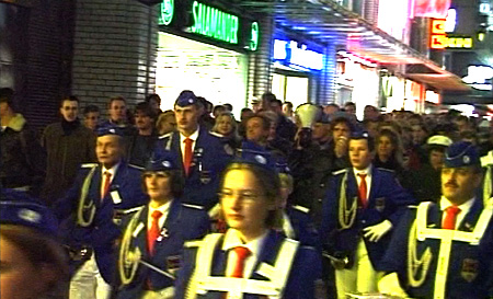 Mit musikalischer Unterstützung eines Spielmannzuges ziehen hunderte Symphatisanten durch die Hamburger Innenstadt zum Rathaus, um der Forderung: