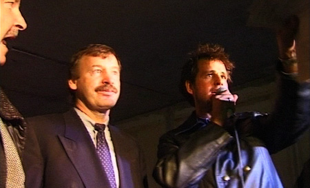 Schlingensief im Gespräch mit dem damaligen Hamburger Bürgermeister Ortwin Runde