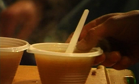" Einen Moment bitte, die Suppe ist bald fertig. "